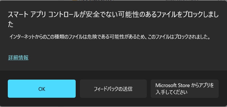 今までも「署名がない」ので正規ルートでアプリを導入してください的な表示が出ましたが、スマートアプリコントロールをオフにしてしまうと、そういった注意喚起すらなくなるかもしれません(やったことがないので実際はどうなるのかはわかりません)。