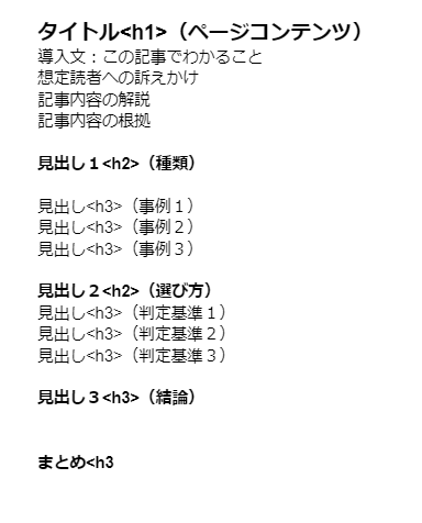 このように見出しを設定しておいて、見出しから徐々に細部にワードをあてて記事を書き進めることが推奨されています。