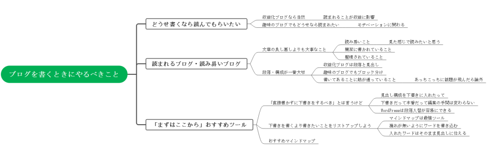 文の脈絡で変わっていることもありますが、左から「主題」「大見出し」「中見出し」に充てて、さらに下層のワードは本文に漏れが無いように書き込んでいます。