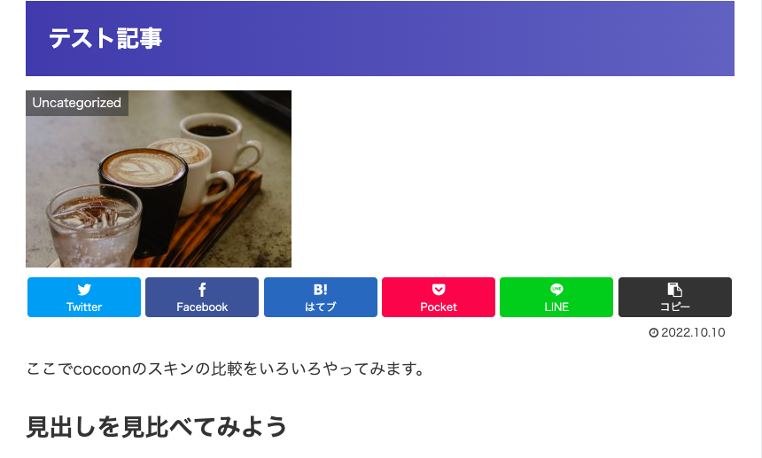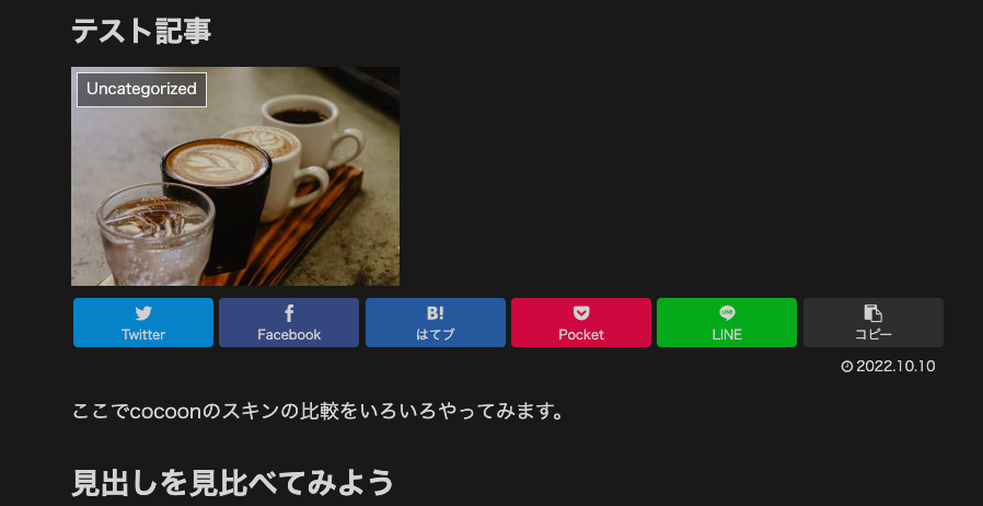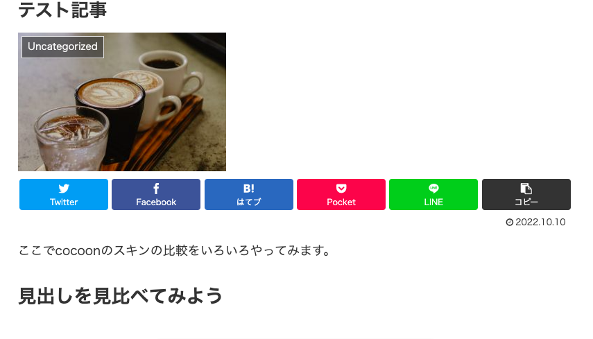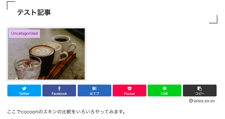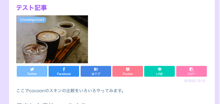 cocoonメニューのスキン選択ページで見れない部分を貼るようにしているので、もしかしたらどのスキンを選ぼうか迷っている人のお役に立てるかも。