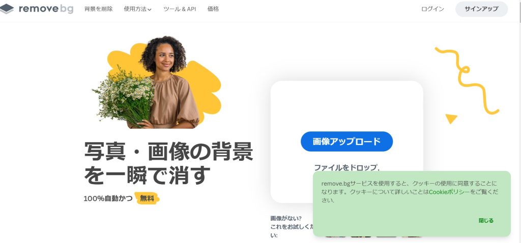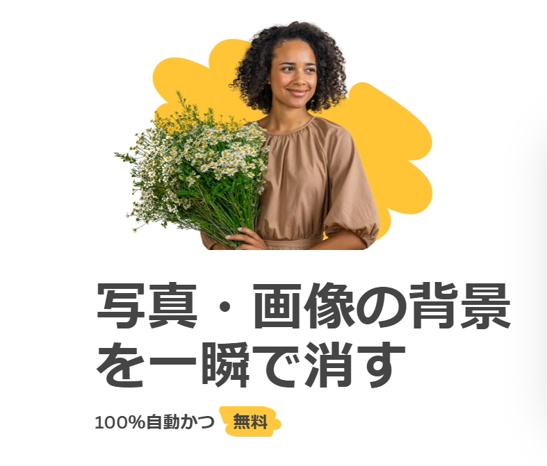 remove.bgとは、写真・画像の背景を一瞬で消すを前面に表示している、まさに冒頭で困った事象を助けてくれるツールなのです。
