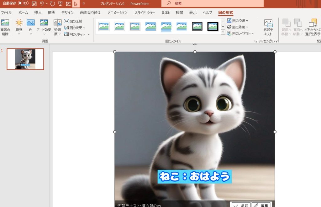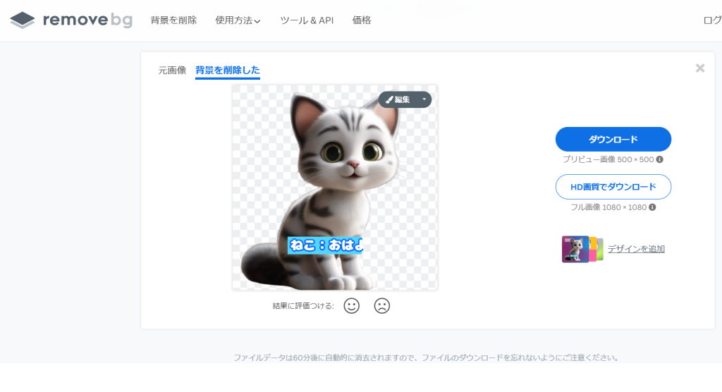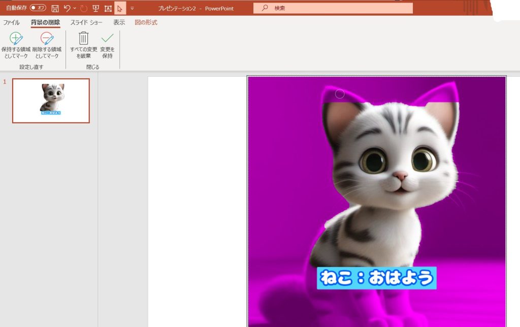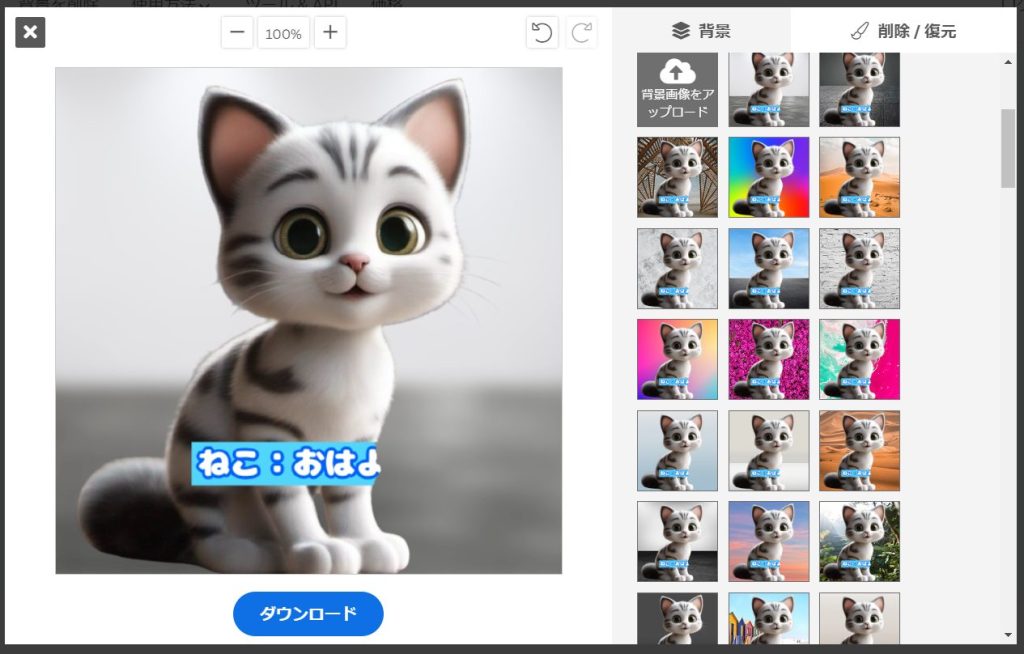 可愛いネコちゃんをLINEスタンプにしようと思ってAIで生成した画像ですが、スタンプにするなら背景は不要です。