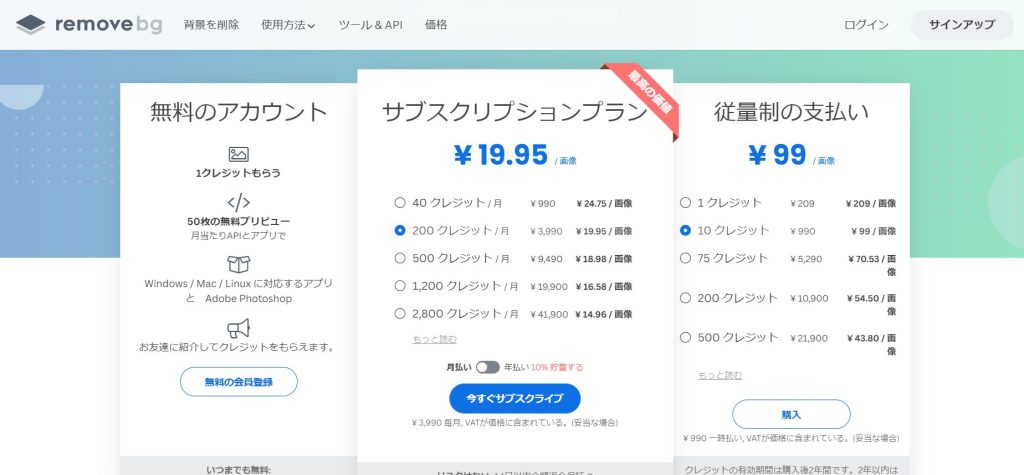 料金はこんな感じで、月に50枚以内ならずっと無料で使い続けることができます。